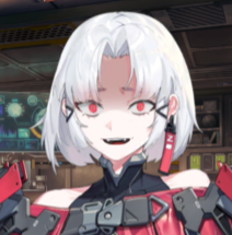白髪のショートカットです。黒い水着の上に、黒と赤のアーマーをまとっています。左耳にでっかい赤い耳飾りを付けています。戦闘の時は、メカニックなデザインの黒い鬼の仮面を被ります。ヴィラン(ヒーローと敵対する悪の組織)に憧れていて、ヴィランとして振る舞います。しかし、ヴィランっぽい行動をしても結局人のためになってしまって本当の悪党にはなれません。電波を感じることが出来ます。探索向きの能力です。電気を細かく操ることも出来ます。特定の回路だけ焼くみたいなことが出来ます。物語の進行すると武装変換してパワーアップします。