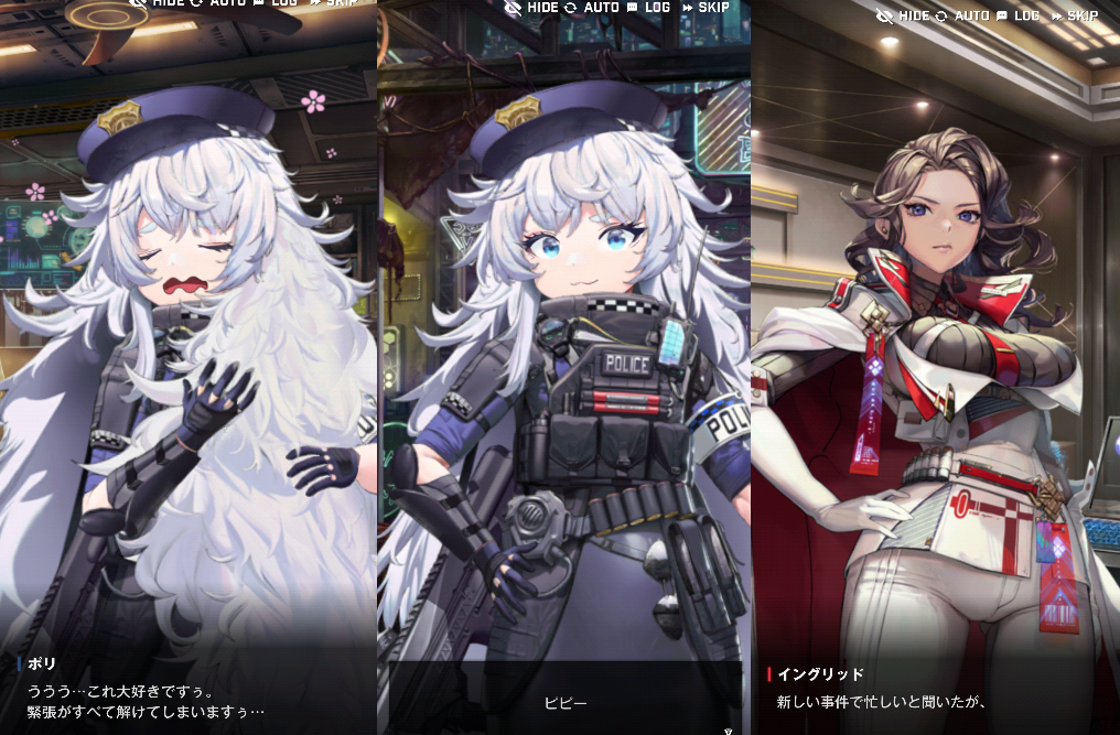 「コスプレカフェ!にゃんにゃん好きわんわん好き!」で作成されたキメラリストに、ポリの名前がありました。カフェの地下には、研究所があり、その入口のボタンをポリがクンクンして見つけます。内部に侵入して捜索すると、ポリとかいた首輪が落ちていました。イングリッドに話を聞くとどうやら、イヌが拉致されたこと、イヌの捜索をある捜査官に頼んだことを聞きます。更なる調査により、爆弾を背負ったイヌがミシリスの爆破テロに使われたこと、その際に捜査官が一人死んだことが分かりました。この爆破テロの犯人が、ミシリスを追い出された研究員であることを突き止め、犯人をポリが逮捕しました。ここで、もう一度イングリッドと話をして、ことの顛末を教えてもらいます。イヌを捜索していたのは、ポリでした。そして、ポリはイングリッドを守ため、爆破テロに巻き込まれて殉職したことが分かりました。ということで、ポリは、イヌのキメラのニケではなく、爆破テロで殉職した捜査官であったことが分かりました。ですが、最後にイングリッドからメッセージが届来ました。「ポリを作成する時に、イヌの遺伝子が混じった可能性がある」