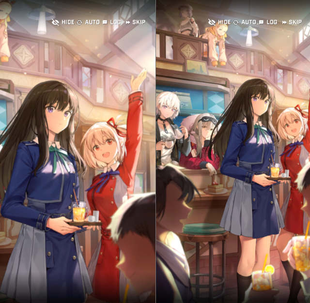 助けをお願いするために、カフェに入ると、千束、たきな、クルミがいました。指揮官は、全員に事情を説明しました。たきなは、シュガーが本物の銃を持っていることに驚きます。情報収集を終えたクルミが、たきなと千束に、ニケのこと、ラプチャーのことを説明しました。指揮監は、アンダーソンに連絡すると、ゲートキーパーが特定出来ていないから、カフェを拠点に調査するように指示されました。カフェで数日過ごしますが、カフェにお客さんが全然来ないため、千束とたきなは、暇しています。そこで千束は、喫茶リコリコの経験を生かして、食べ物とコーヒーを新しくつくることにしました。千束が作った食事とコーヒーを指揮官は試食します。とても美味しいと言います。