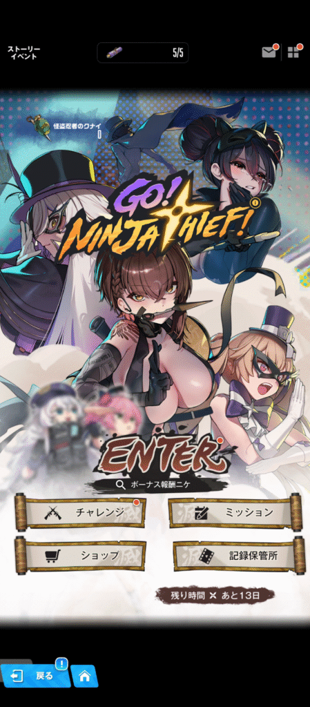 デイリー消化して、イベントクエストを行いました。キャンペーンは、マザーホエールでとまりました。火力が足りない?のか。新イベントのGo Ninja Shief!を進めました。