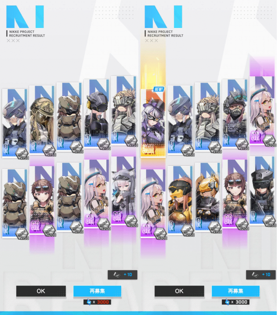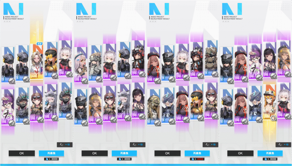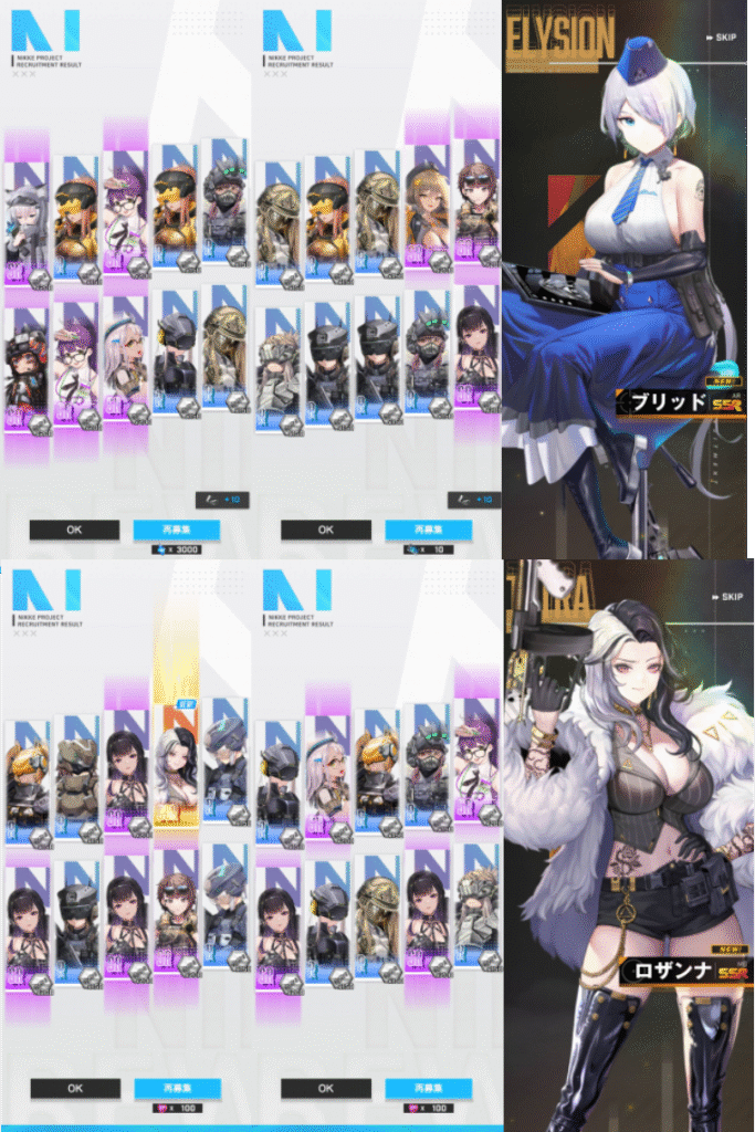 デイリー消化して、イベントクエスト、共同作戦を行いました。まだ、20-15は突破できません。ここからは、クラストでないかなぁと期待しながら、ちょいちょいガチャ回ししていこうと思います。一般募集20回、フレンドガチャ20回回しました。ガチャでロザンナ、モールドからブリッドがでました。欲しいのは、後クラスト1体だけなので、ウィッシュリストを持ってないSSRとリターとナガのボーナスリクルートで交換できるキャラにしました。シルバーマイレージは、94です。後106です。