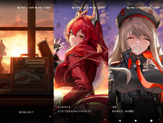 ラピは、レッドフードの中にいました。クラウンとチャイムは、ラピがレッドフードに変身したと証言します。ラピは、故郷へというので、レッドフードの故郷に向かうことにしました。クラウンとチャイムは、ヴァイスリッターと名乗りました。彼らは、マリアンを保護しているピルグリムでした。レッドフードには、欠落した記憶があって、それがアークを破壊しろという言葉になっているようでした。巨大な目に見つめられるイメージが浮かびます。レッドフードが、ラピは指揮官を愛しているというと、ラピが体を使って抵抗しました。レッドフードと手を繋いで歩くことになりました。レッドフードの故郷までは、クラウン達が案内してくれました。故郷に近づくとクラウン達は、トロンベ(機械の馬)に乗って去っていきました。