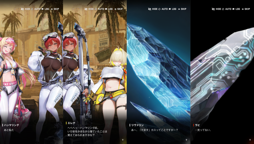 探索専用の部隊として、ハンマリング、リヴァリン、エレグが駐屯地01にやってきました。まずは、クリスタルが生えている地帯を探索します。探索に出発する前にシフティーから、基地に2人残るようにお願いされました。ドロシーにラピの足手まといだとディスられたアニスとネオンが基地に残ると言いましたが、指揮官は二人を励まして全員で出発することにしました。ハンマリングは、鉱物探索なのでアークでは仕事がなく、エレグは新しいエネルギーの可能性を探索しに、リヴァリンは輸送の仕事がお金持ちのおじさんの機嫌取りなのが嫌で、それぞれ志願したようです。クリスタルにつくと、石英のような見た目だけど、電気が流れている鉱物を見つけます。持って帰ろうと壊すと、その場からチリになってしまいます。さらに進むとラプチャーがクリスタルにとらわれていて、ラプチャーが死ぬとクリスタルが成長する様子が見られました。エレグとハンマリングの調査の結果、クリスタルは、誰かが意図的にこの場所で成長させていること、クリスタルは周囲のエネルギーを吸い取って電気に変えること、電気には流れがあって根元があることがわかりました。野営していると、リヴァリンが誰かと連絡をとっていました。何かたくらんでいるようです。朝になると周辺にクリスタルが生えていました。リヴァリンの希望で撤退せずにもう少し進むことにしました。先に都市があるようです。都市の扉をあけるとクリスタルが沢山生えた都市が見えました。