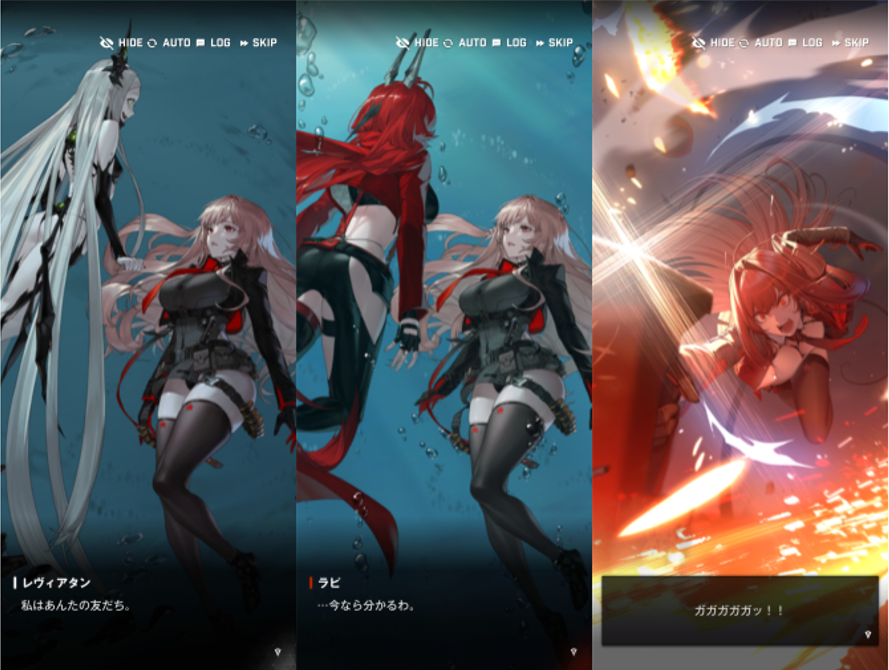 ラピが先行しすぎているため、カウンターズはバランスを崩しているとウンファに指摘されてしまいます。戦力的にベヒモスとレヴィアタンと戦うには、足りないため、グレイブとシンデレラとの合流を急ぎます。ラピはレッドフードの後継者になったつもりなのに、ベヒモスに負けてしまった。グレイブは、自分の信念を貫き続けてシンデレラを復活させられたのに、自分は何もできていないことに、焦りを感じています。すっかり自信をなくしてしまったラピに指揮官は、激励します。ベヒモスを倒すのは、ラピだ!と。シンデレラとグレイブの所につくと、グレイブがシンデレラに水をかけていました。レヴィアタンの黒い液体金属を流していたようです。美しくないから王子は見ないでと言われます。シンデレラが満足いくまで水浴びをしてから今後の方針を話します。レヴィアタンをシンデレラが抑えて、ベヒモスをアブソルートとカウンターズで撃破することにしました。グレイブからレッドフードから受け継ぐとは、レッドフードフードになることではなくて、レッドフードから教えてもらったことを使って自分らしく生きることだと激励されます。