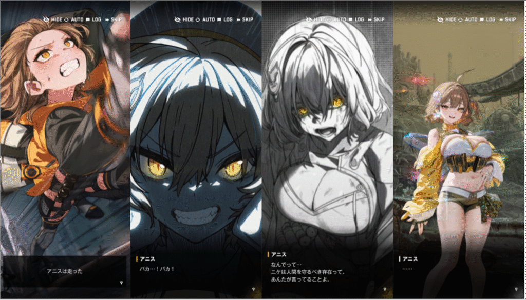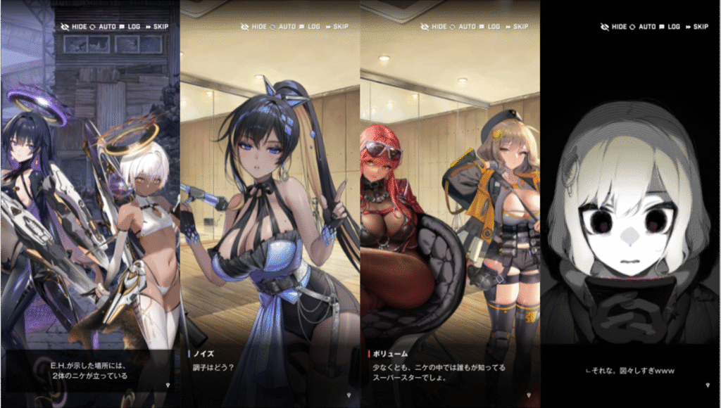 ネオンは、バイパーとジャッカルに連絡しました。目的の人物は、アウターリムの歓楽街バッドドリームにいるようです。そこでは、秘密が守られる場所なので、なかなか聞いて回るのは難しそうです。ジャッカル、バイパーからE.H.を紹介されます。エキゾチックのリーダーになったようです。罪を償うために、ニケになったとE.H.は、語ります。バイパーも罪を償うつもりでした。エンドレスとエタニティーというニケがアウターリムを見守っています。エニックが配置したニケで、アークに敵対する行動をとった人間、ニケを処理するニケです。E.H.から第三次地上奪還作戦を知っているか?とネオンは問われますが、知らないといいます。どうやら、その作戦のために、武器や装備を増産しているようです。ネオンは、ミセス ミスに合うためにバッドドリームに足を踏み入れます。