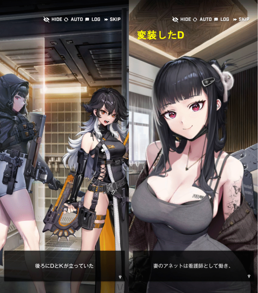 アンダーソンから呼び出されて、「救いの聖火」と呼ばれるカルト集団に潜入操作して、D-WAVEの捜査を行うように依頼されます。(D-WAVEとは、コラボイベントの時に登場して、別の世界とニケの世界をくっつける存在です。ゲートキーパーを倒すと元に戻るという設定です。)救いの聖火は、ラプチャーを神とたたえるカルト集団です。どうやら、街の住人が連続で失踪している事件が起こっているようです。A.C.P.U.のポリはデイパラを追って「救いの聖火」に捜査に行って失踪してしまいました。